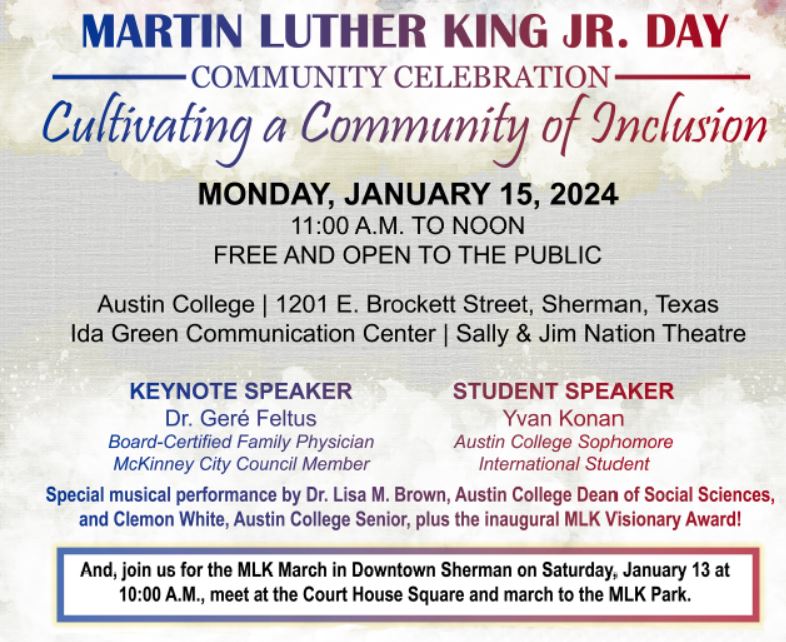 Join the MLK March in downtown Sherman. Meet at the court house square and march to the MLK Park on north East St.